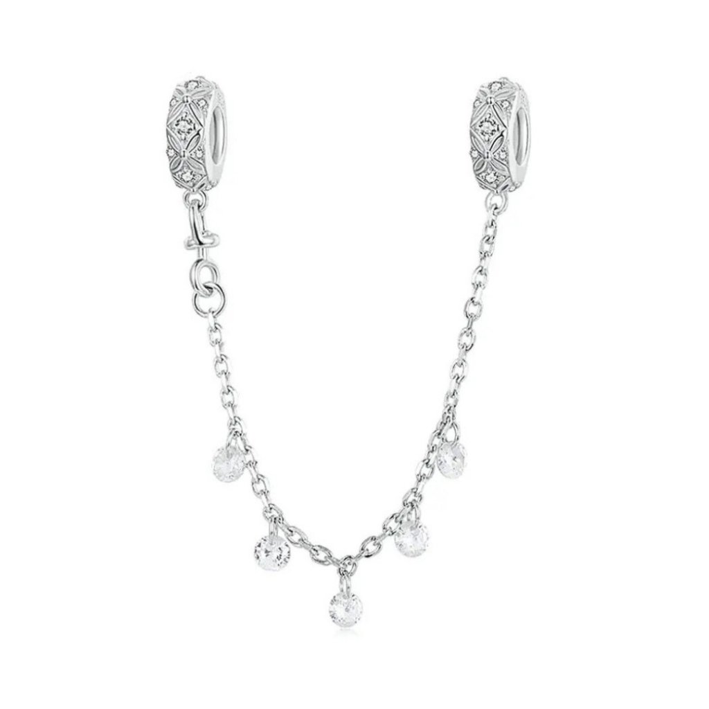Bezpečnostní řetízek Třpyt rosy je součástí kolekce šperků Jiskřivá elegance a se stříbrným korálkem Jiskra tvoří neodolatelnou dvojici.