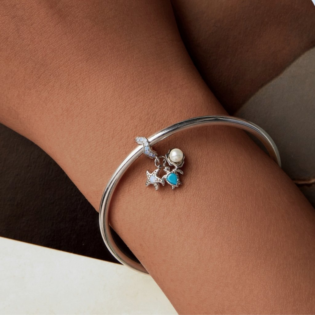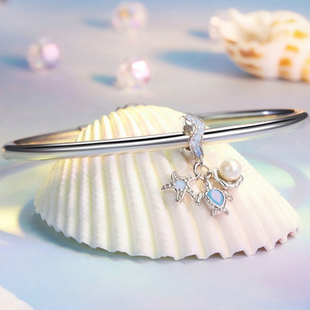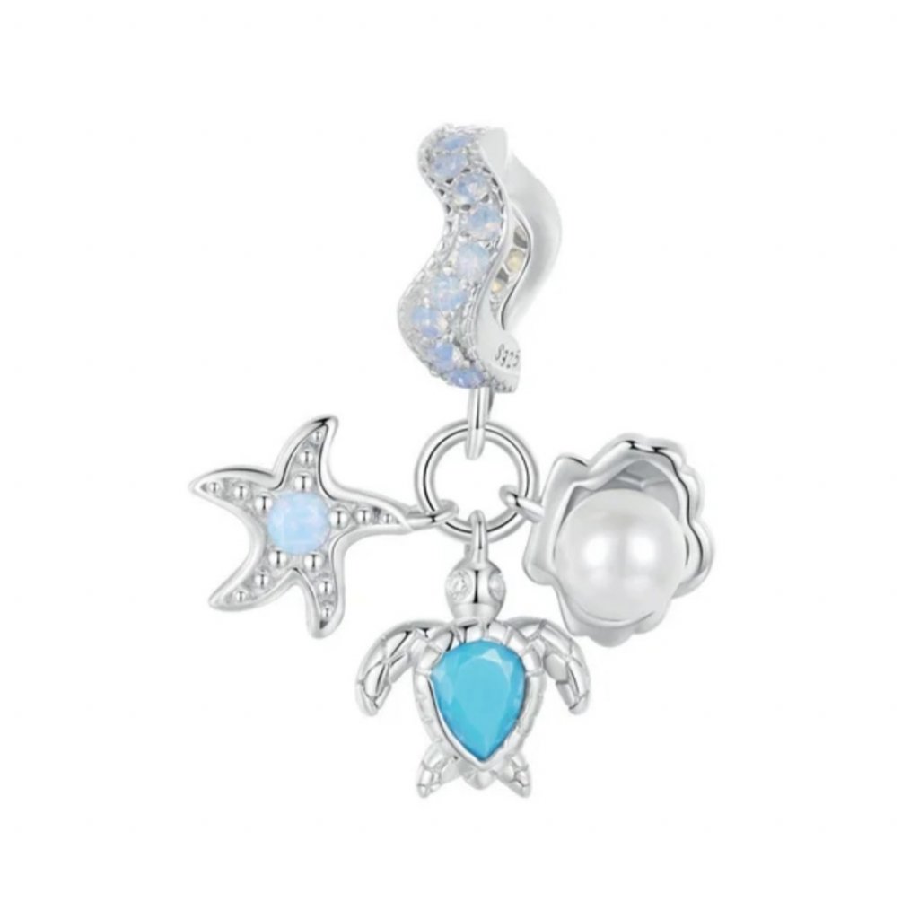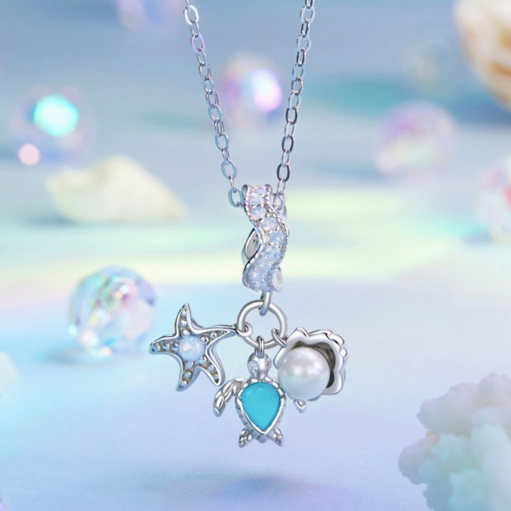 Stříbrný přívěsek Podmořský svět je překrásným šperkem symbolizujícím svět pod mořskou hladinou, který je stále plný tajemství a neobjevených území. Perla symbolizující dokonalost a trvanlivost, želva jako symbol dlouhověkosti a mystická hvězdice plná naděje, tři symboly spojeny do jednoho třpytivého šperku. Stříbrný přívěsek Podmořský svět byl stvořen pro milovnice mořských hlubin.