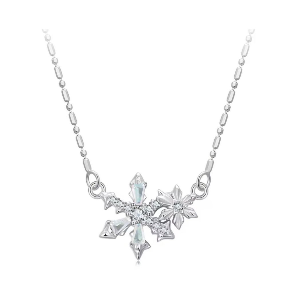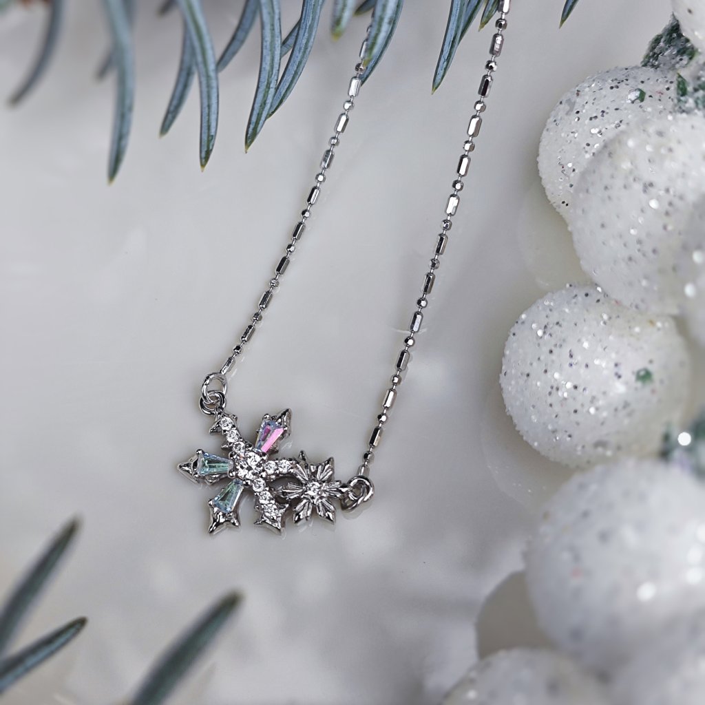 Stříbrný náhrdelník Vločka věčnosti je ztělesněním křehké krásy a nekonečného rytmu přírody. Připomíná Ti vzácnost jedinečných okamžiků, které jsou pomíjivé a cenné, stejně jako každá sněhová vločka. Tento jemný šperk tě zahalí třpytem zimní elegance a vnese do tvého života klid, harmonii a nadčasovou krásu. Stříbrný náhrdelník Vločka věčnosti je tichým poselstvím kouzla okamžiků, které si neseš v životě s sebou.